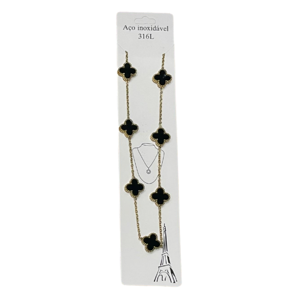 Bling Collar Acero Trebol Negro