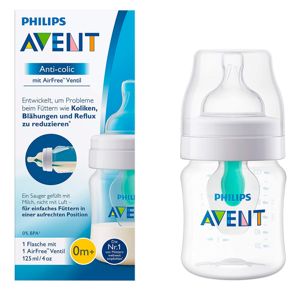 El biberón anticólico Philips Avent AirFree con un diseño ergonómico y seguro, cuenta con el innovador sistema AirFree. Su tetina mantiene el flujo constante de leche, incluso en posición horizontal, permitiendo alimentar al bebé de manera erguida. Esto ayuda a reducir la ingestión de aire por parte del bebé durante la alimentación, lo que permite disminuir problemas comunes de alimentación, como cólicos, gases y reflujo. Además, el biberón está fabricado con polipropileno sin BPA, con una tetina de silicona también libre de BPA, lo que contribuye a la seguridad y bienestar del pequeño.