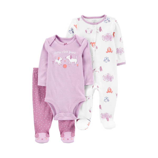SET 3 PC PIJAMA Y PELELE C/PIES Y BODY PERROS